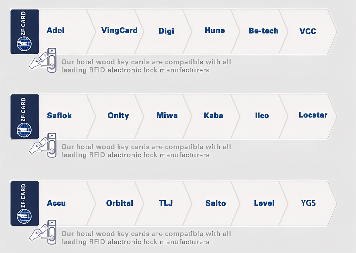 Any smart lock brands need correponding smart cards to unlock their smart locks, and some of them choose us to provide them with smart cards. For example, Hilton choose us. Facing these situations, we are appreciate to them and provide them with enough smart cards.