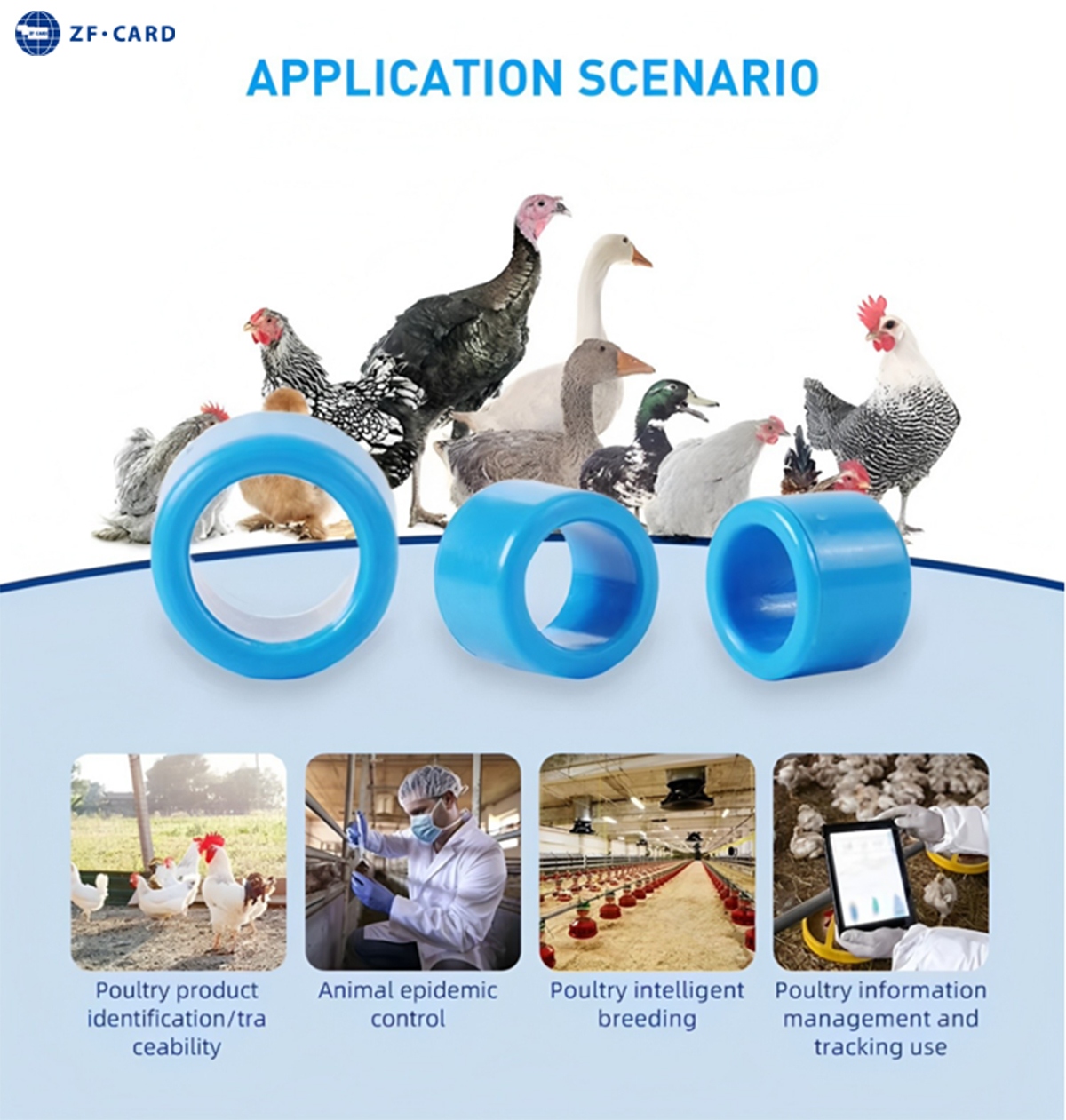 RFID animal tags identify poultry products, ensuring traceability from farm to market.